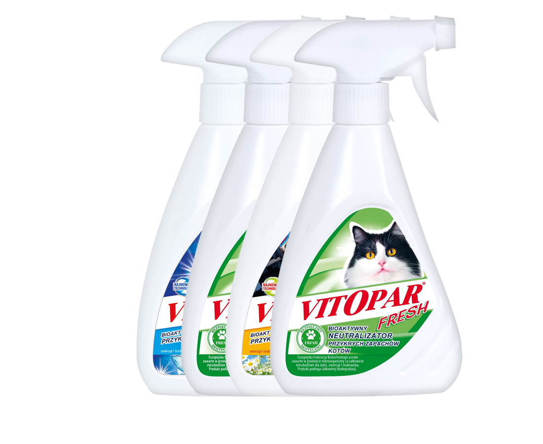 Vitopar rozkłada organiczne cząsteczki odpowiedzialne za nieprzyjemne wonie, eliminując je u źródła. Formuła działa na zapachy azotowe, siarkowe i amoniakowe, skutecznie usuwając ślady po moczu i odchodach.